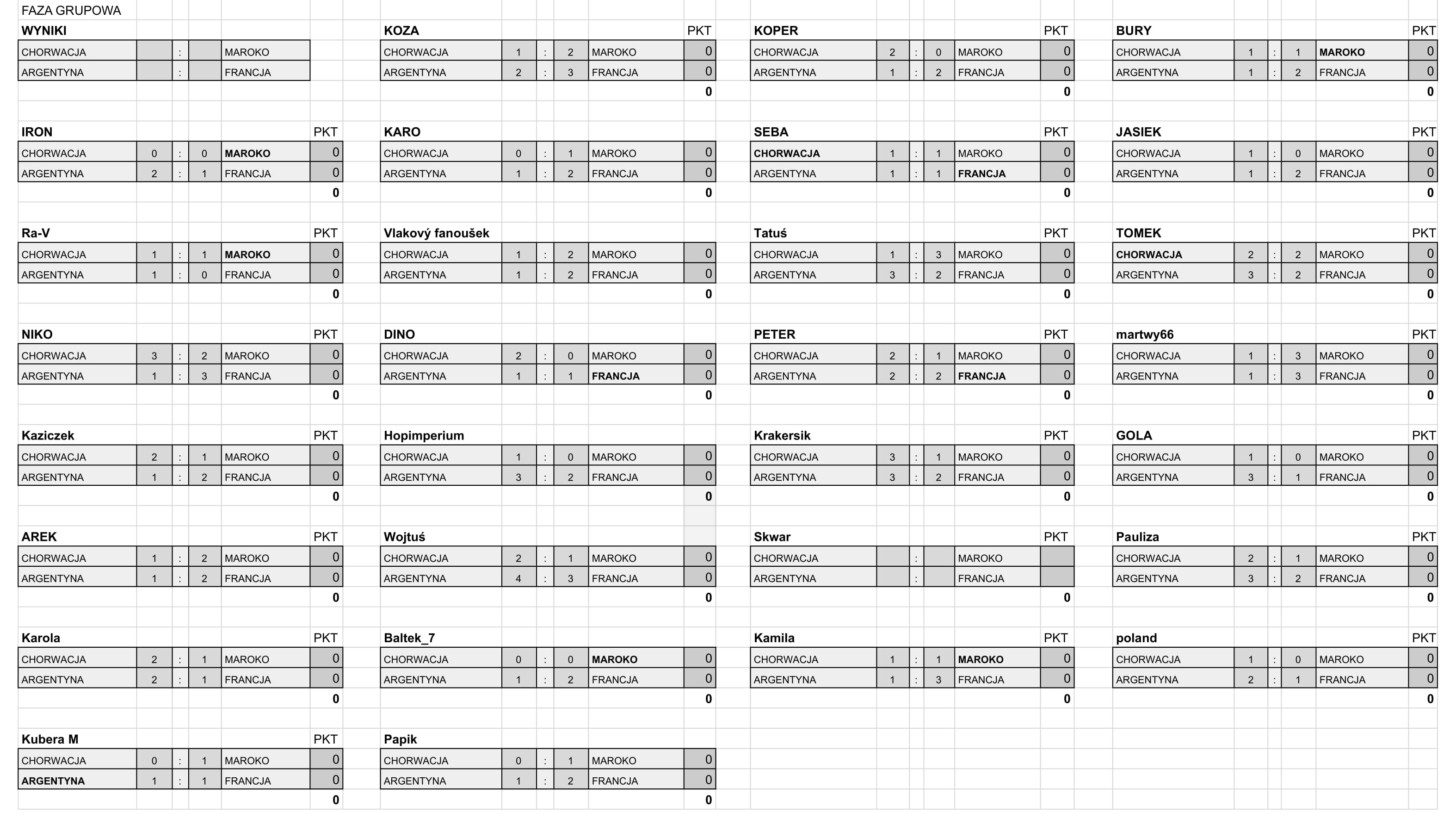 Nasze typy finałowe 2022-12-17 przez typowacze To już ostatnie typowania tych mistrzostw. Już jutro poznamy zwycięzcę 🙂 Poprzedni artykułPółfinałowe typyNastępny artykuł Pauliza ZWYCIĘZCA Dodaj komentarz Anuluj pisanie odpowiedziTwój adres e-mail nie zostanie opublikowany. Wymagane pola są oznaczone *Komentarz * Nazwa * Adres e-mail * Witryna internetowa Zapamiętaj moje dane w tej przeglądarce podczas pisania kolejnych komentarzy. Δ