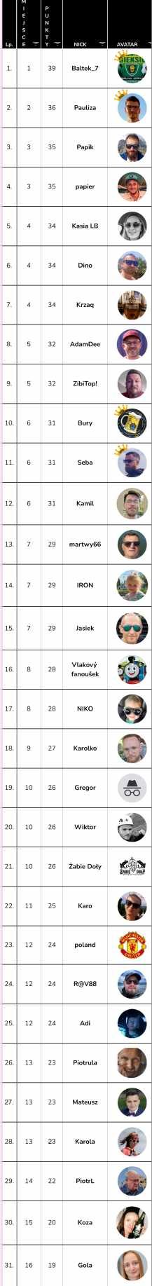 Tak prezentuje się tabela, jak zawsze proszę o sprawdzenie punktacji.